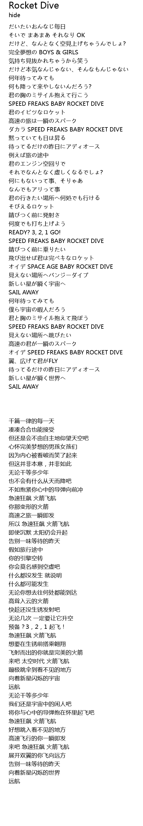 | [00:58.61] | SPEED FREAKS BABY ROCKET DIVE |