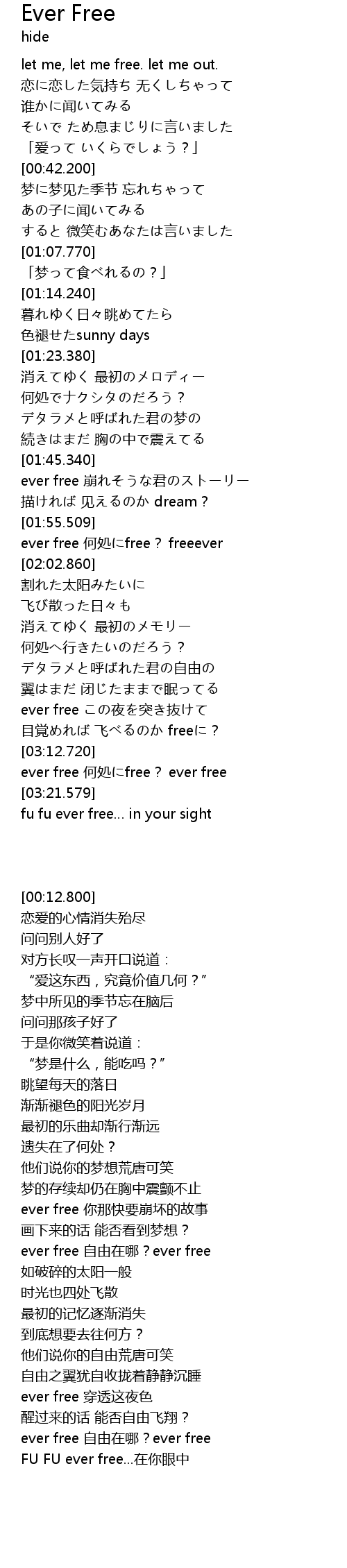 | [03:13.780] | ever free hé chǔ free? ever free |