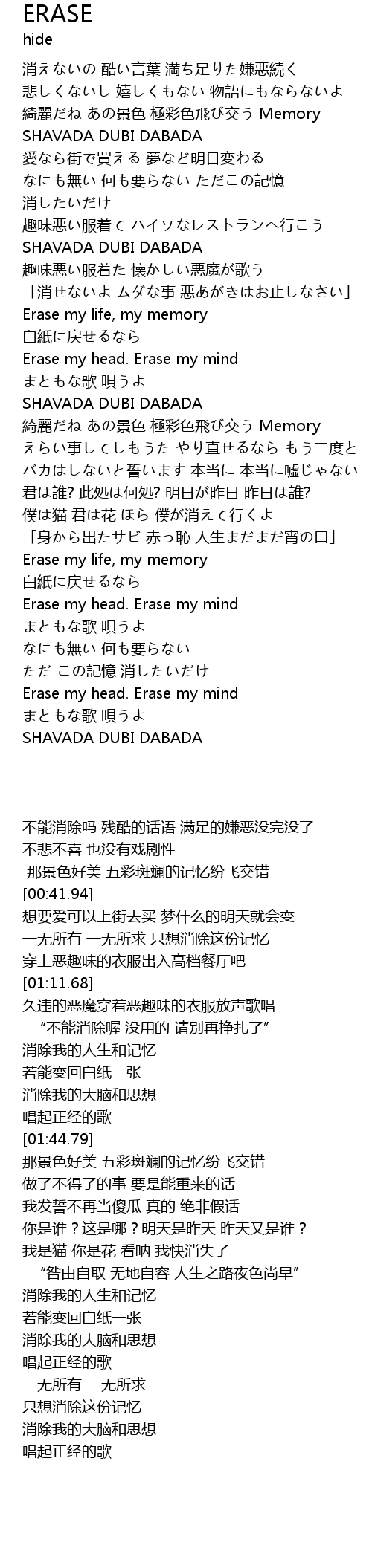 | [00:53.66] | 一无所有 一无所求 只想消除这份记忆 |