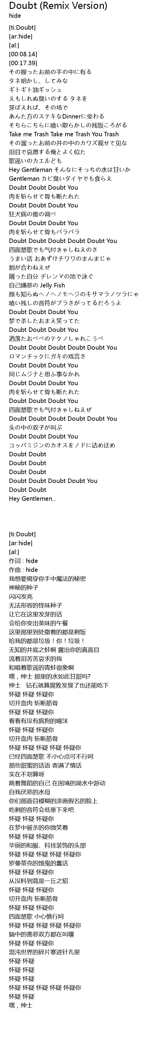 | [03:34.73] | Doubt Doubt Doubt Doubt Doubt You |