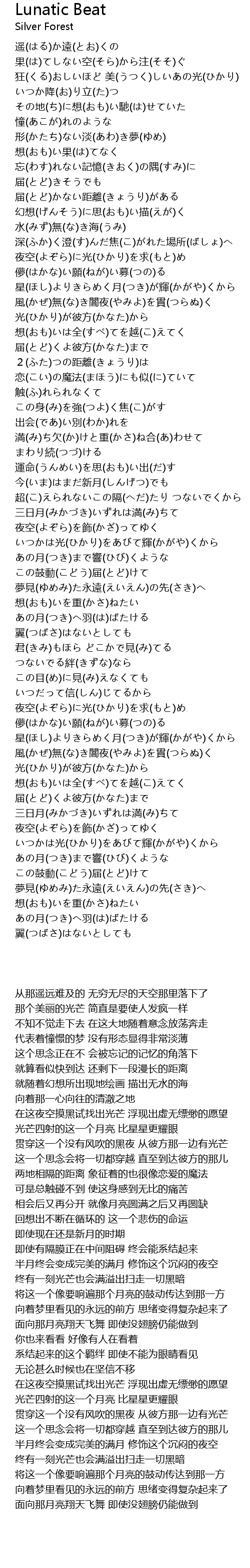 | [03:42.650] | 夜空(よぞら)に光(ひかり)を求(もと)め 儚(はかな)い願(ねが)い募(つの)る |