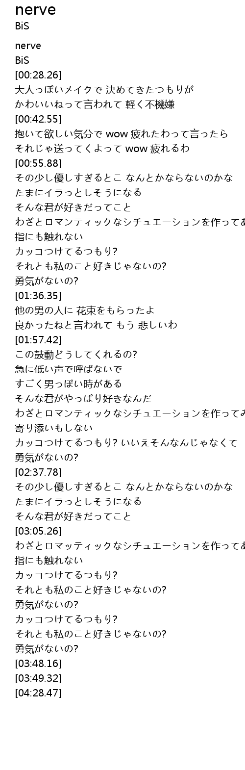 | [03:33.73] | カッコつけてるつもり? それとも私のこと好きじゃないの? |