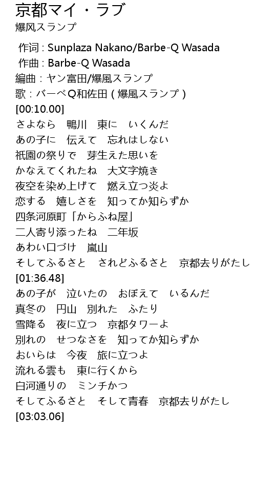 | [02:52.19] | そしてふるさと そして青春 京都去りがたし |