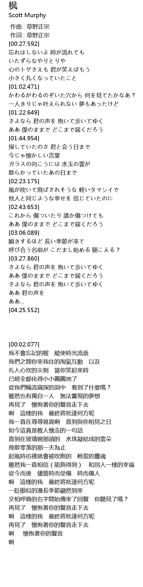 | [00:01.00] | 作词 : 草野正宗 |