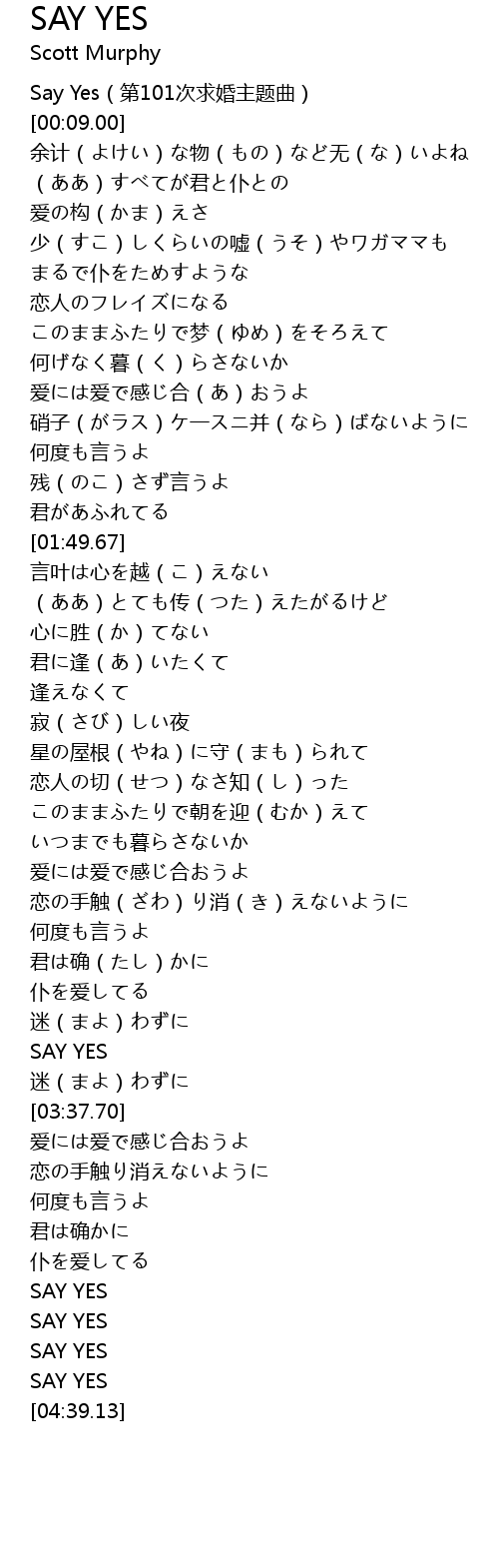 | [00:04.00] | Say Yes dì 101 cì qiú hūn zhǔ tí qū |
