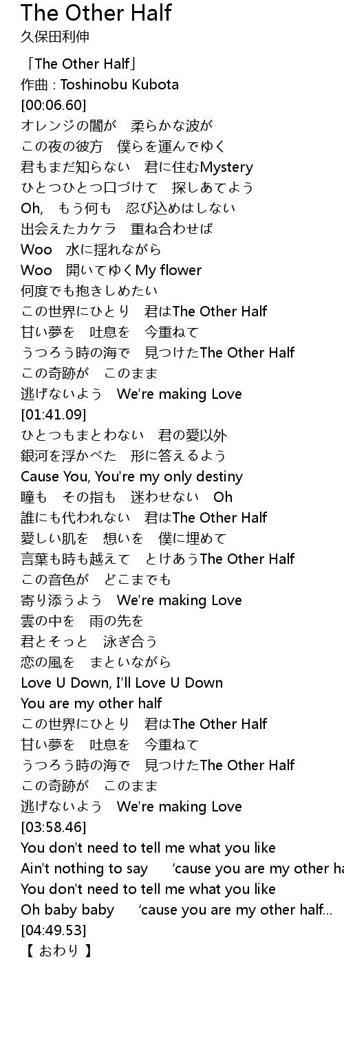 | [04:23.12] | Ain' t nothing to say ' cause you are my other half |