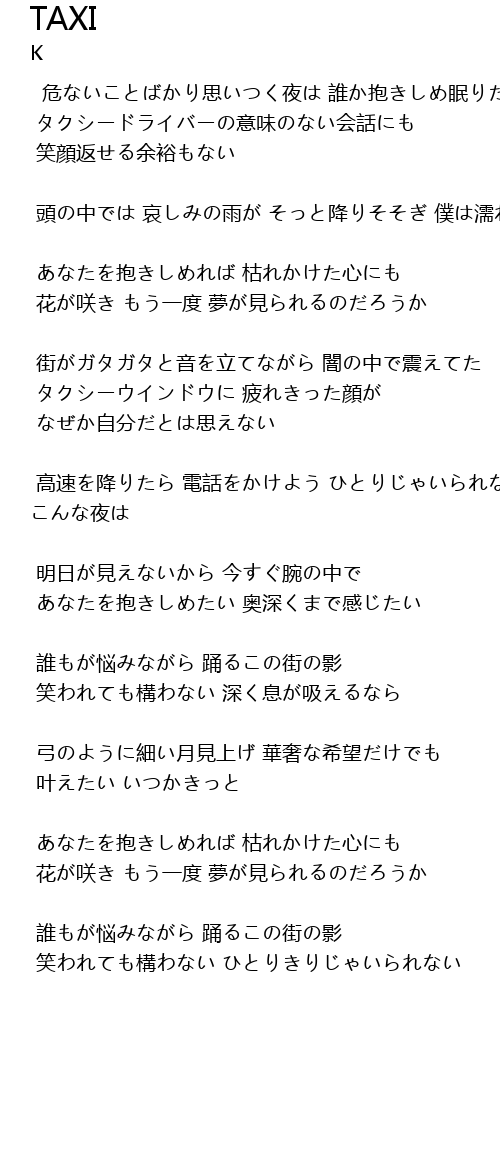 | 歌曲 | TAXI |