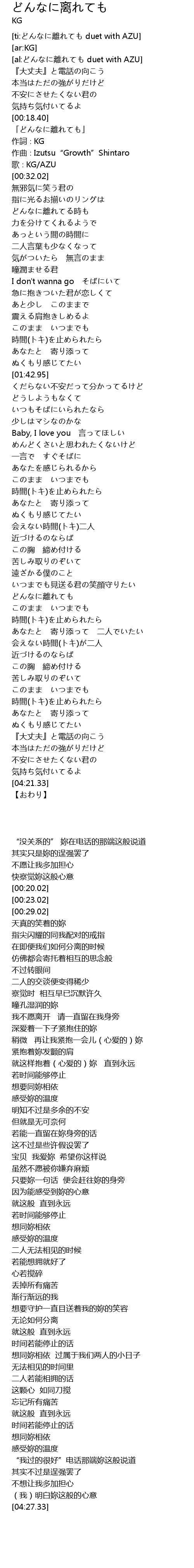 | [ti:どんなに離れても duet with AZU] | |