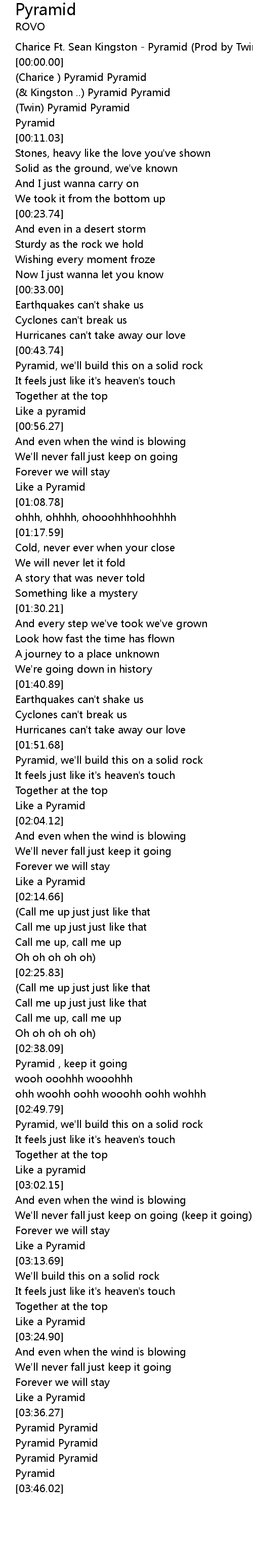 | [00:03.70] | (& Kingston ..) Pyramid Pyramid |