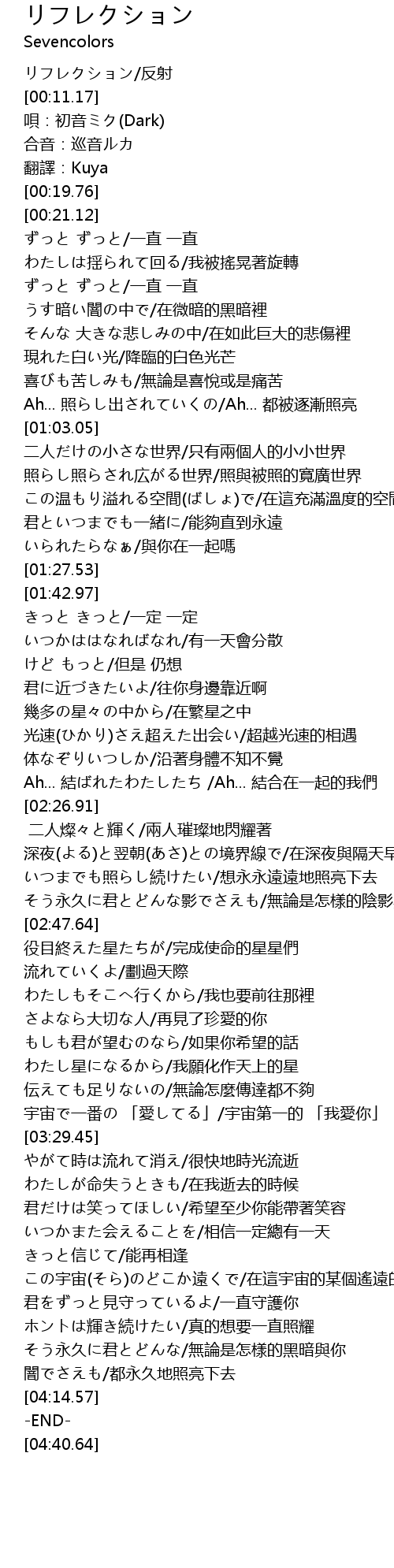 | [03:14.18] | わたし星になるから/我願化作天上的星 |