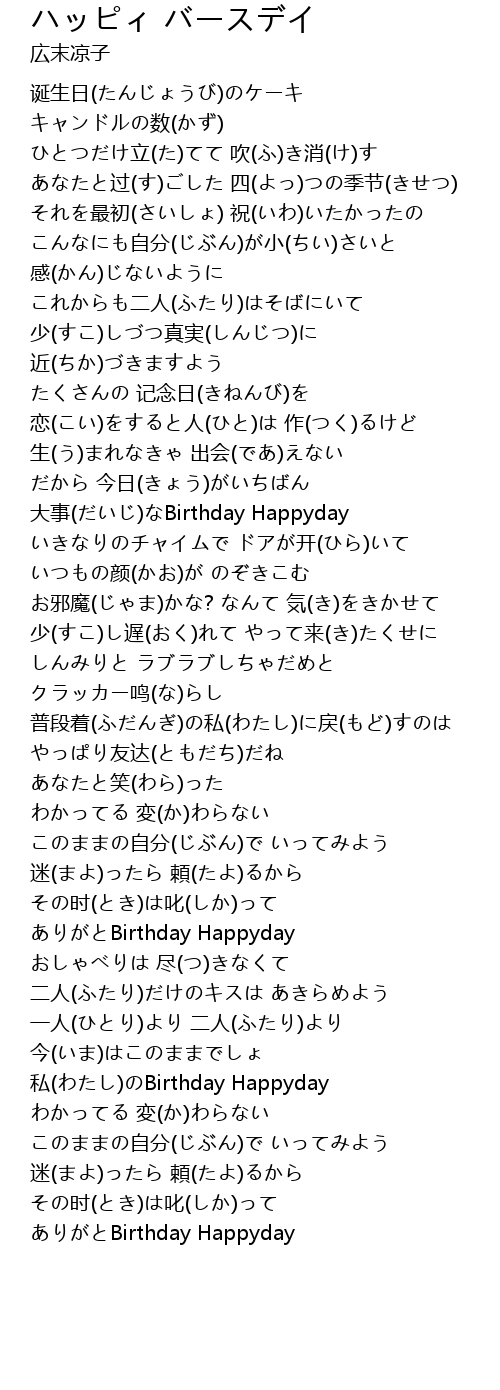 | [01:18.25] | 大事(だいじ)なBirthday Happyday |