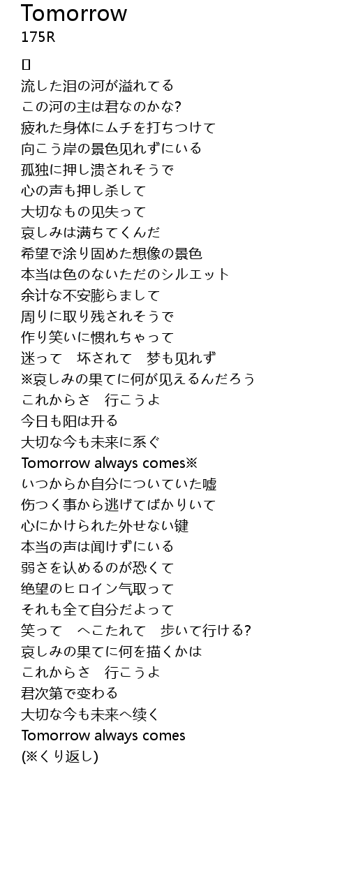 | Tomorrow always comes※ | |