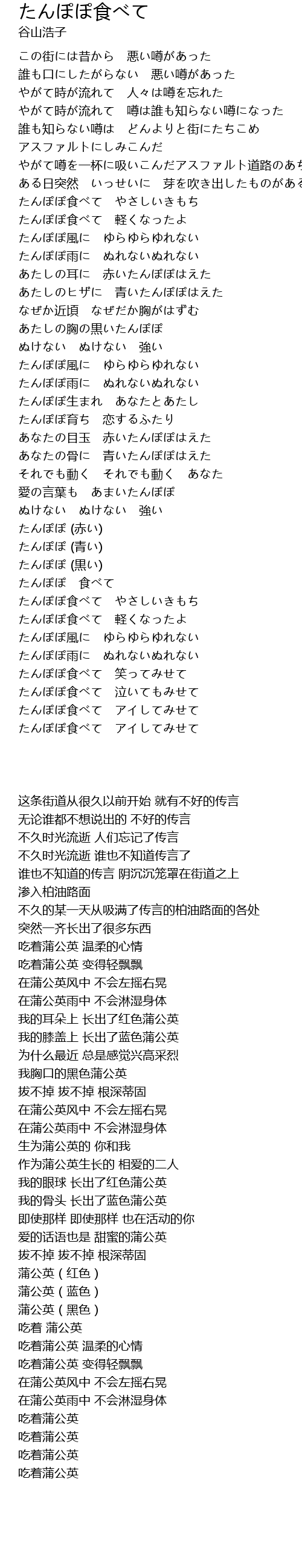 | [02:18.256] | あなたの目玉 赤いたんぽぽはえた |
