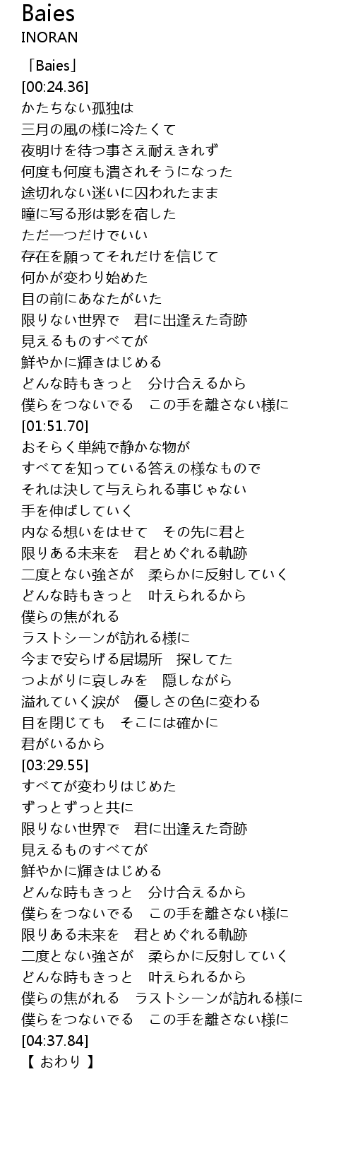 | [03:40.18] | 限りない世界で 君に出逢えた奇跡 |