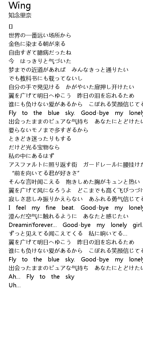 | 翼を广げて风になろうよ どこまでも高く飞びつづけて | |