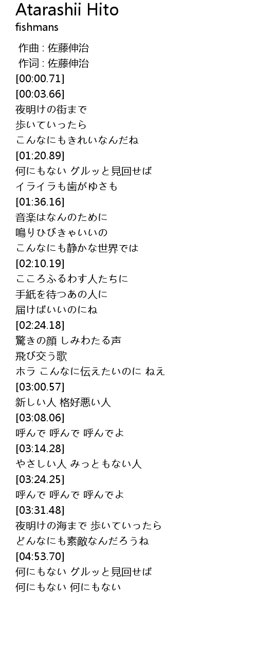 | [00:00.23] | 作词 : 佐藤伸治 |