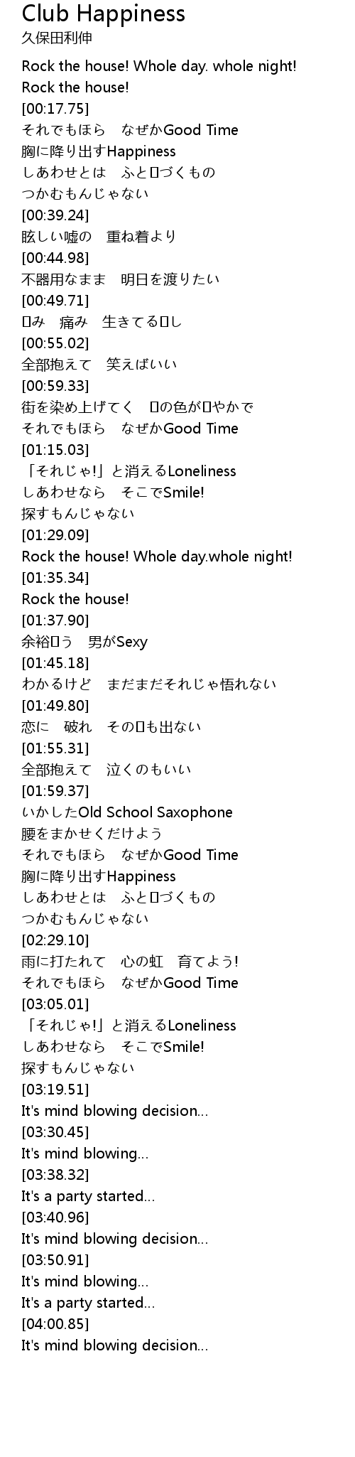 | [01:32.40] | Rock the house! Whole day.whole night! |
