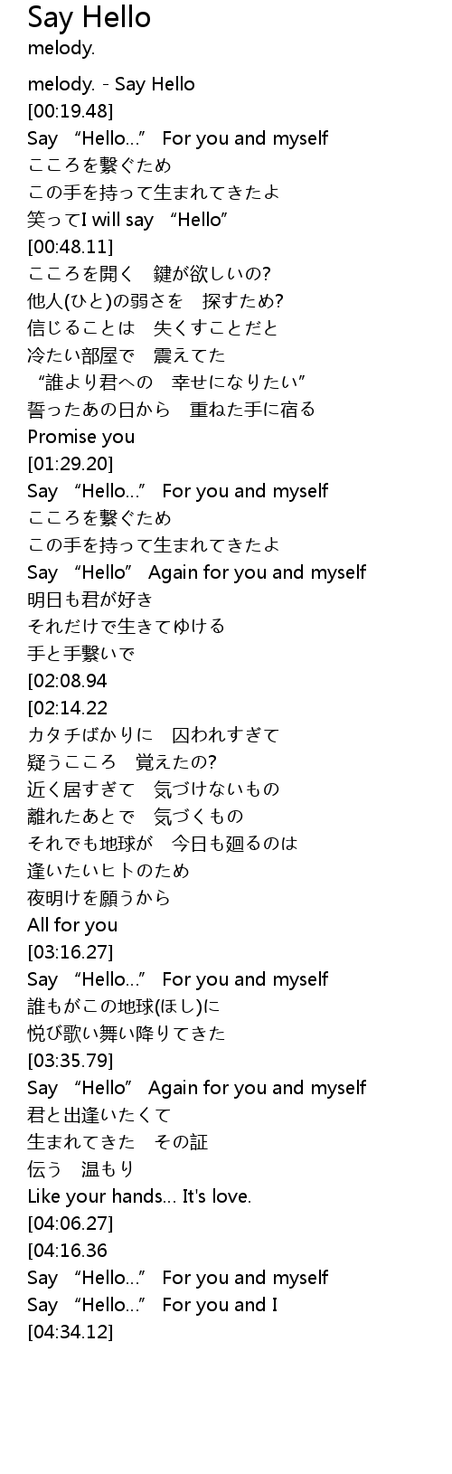 | [00:00.00] | melody. Say Hello |