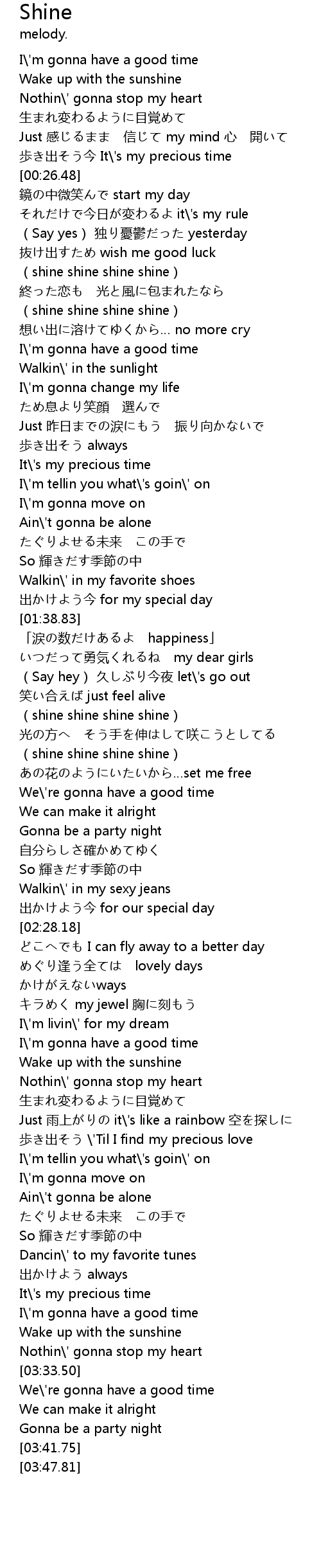 | [02:03.78] | (shine shine shine shine) |
