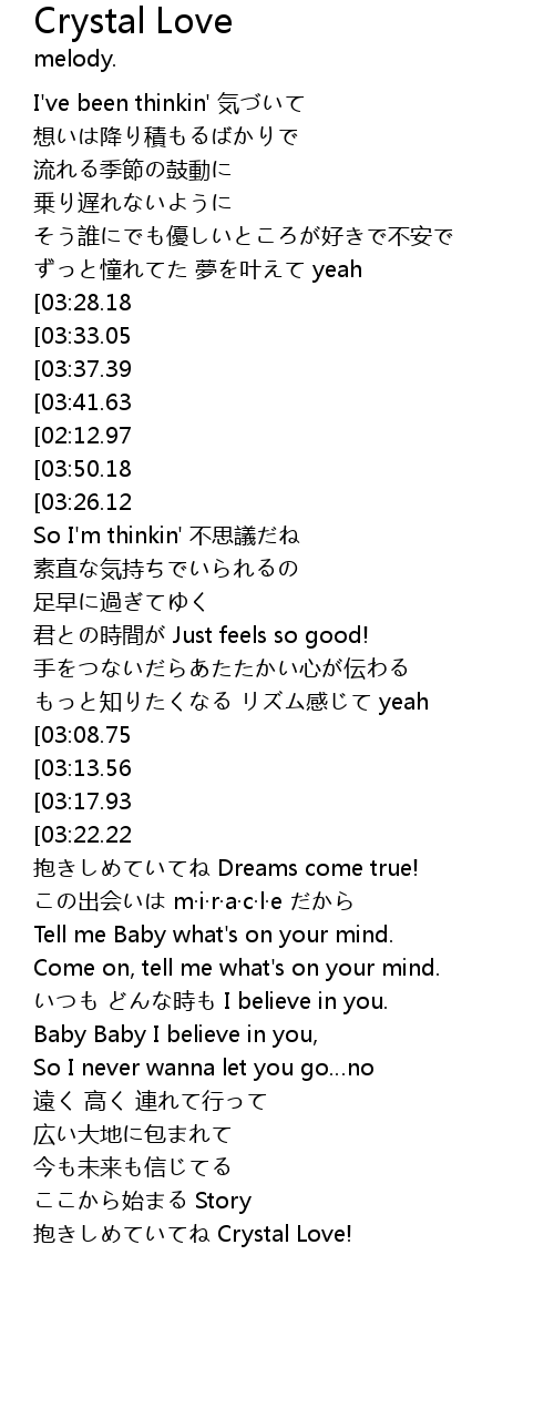 | [04:18.44] | 抱きしめていてね Crystal Love! |