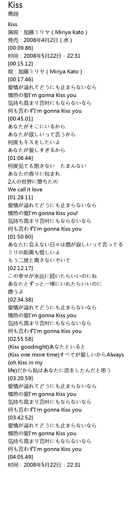 | [03:36.57] | 何も言わずI'm gonna Kiss you |
