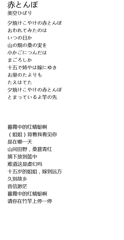 | [00:15.57] | 暮霞中的红蜻蜓啊 |