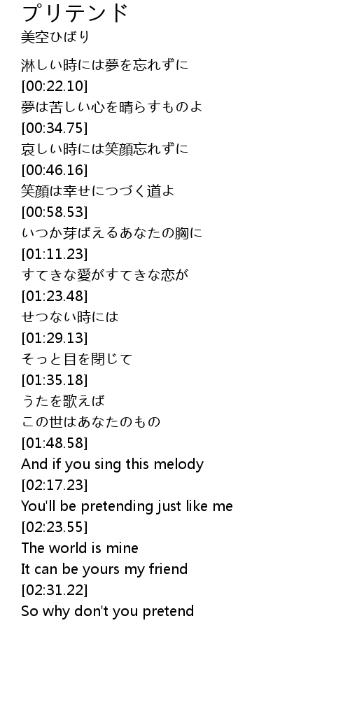 | [02:19.32] | You'll be pretending just like me |