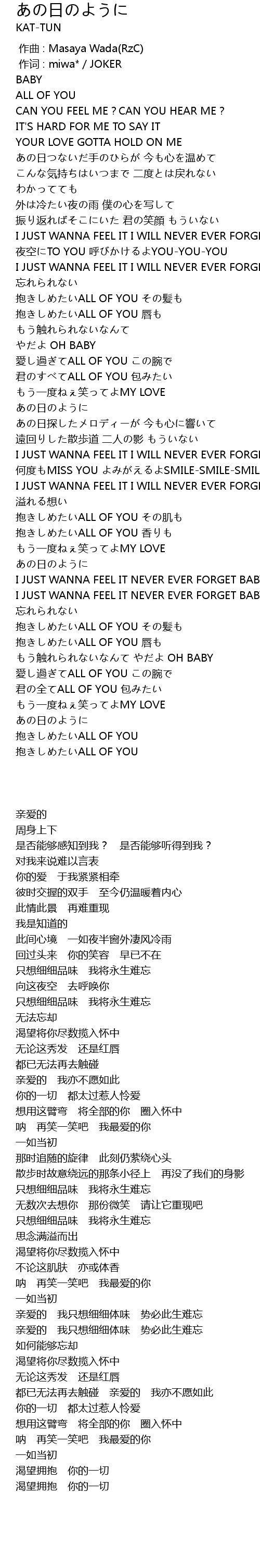 | [04:30.50] | もう触れられないなんて やだよ OH BABY |