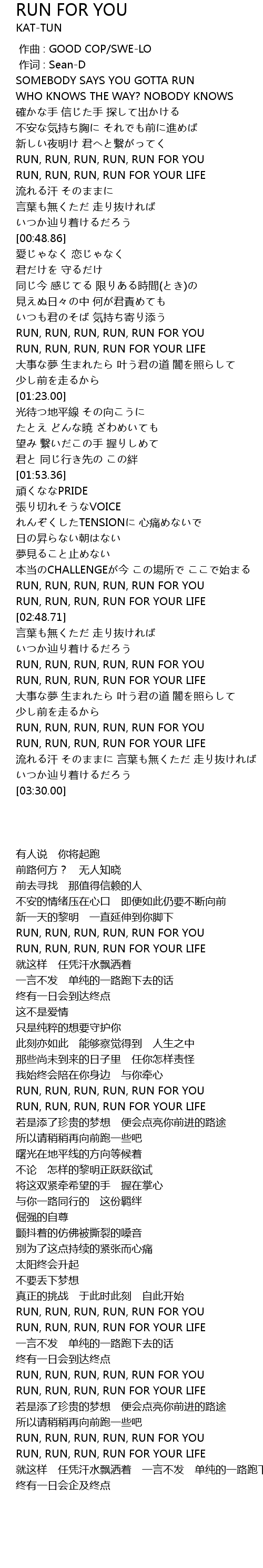 | [00:32.77] | RUN, RUN, RUN, RUN, RUN FOR YOU |