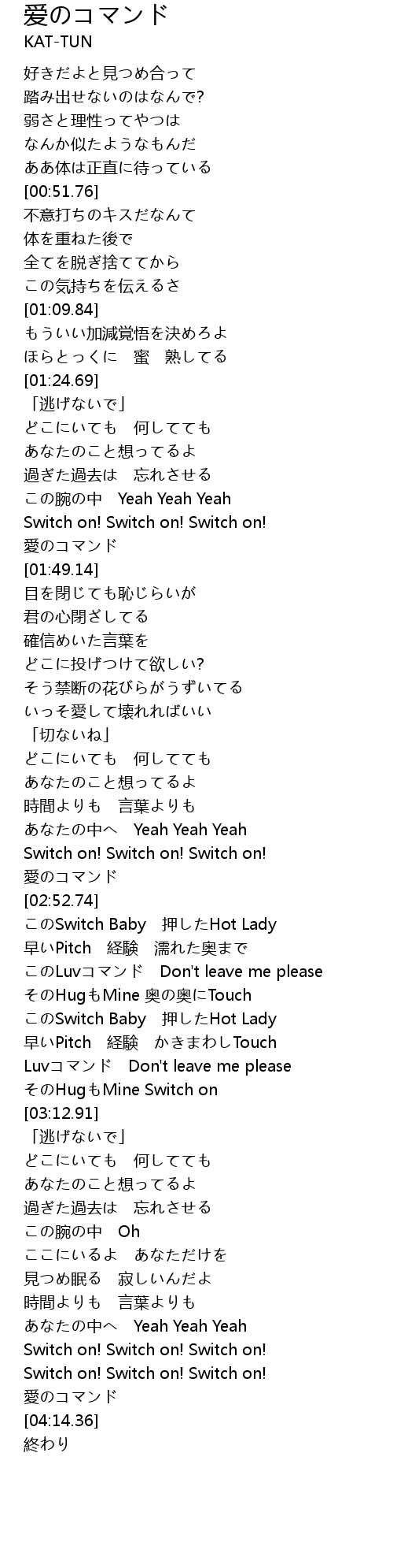 | [03:00.13] | このLuvコマンド Don't leave me please |