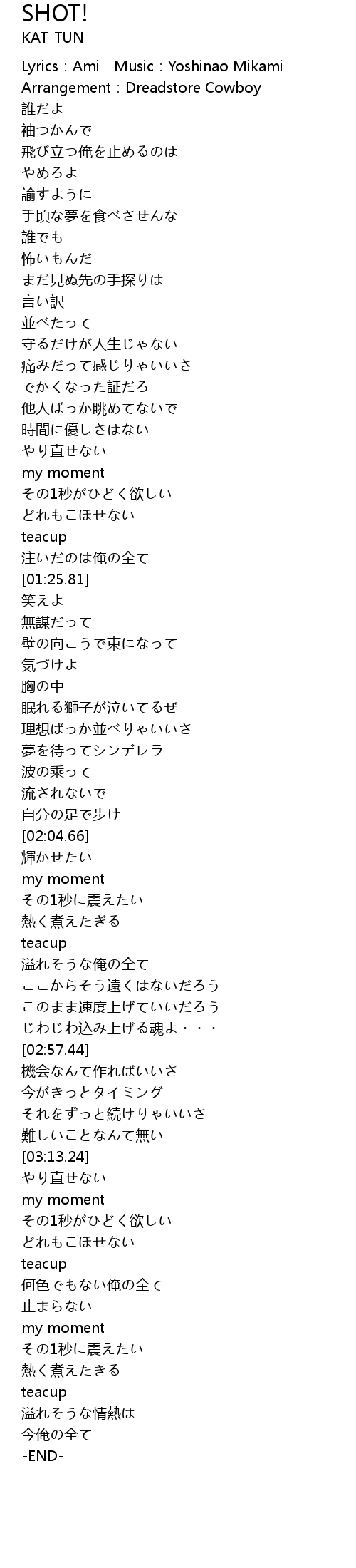 | [00:04.79] | Lyrics: Ami Music: Yoshinao Mikami |
