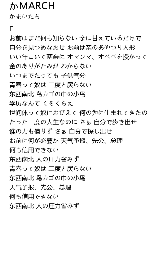 | 世间体って奴におびえて 何の为に生まれてきたの | |
