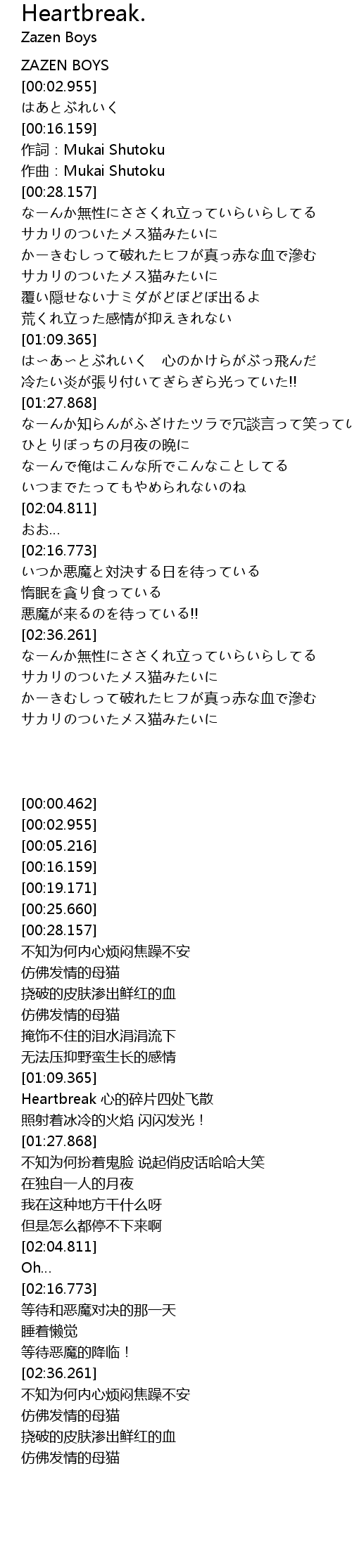 | [01:14.629] | Heartbreak 心的碎片四处飞散 |
