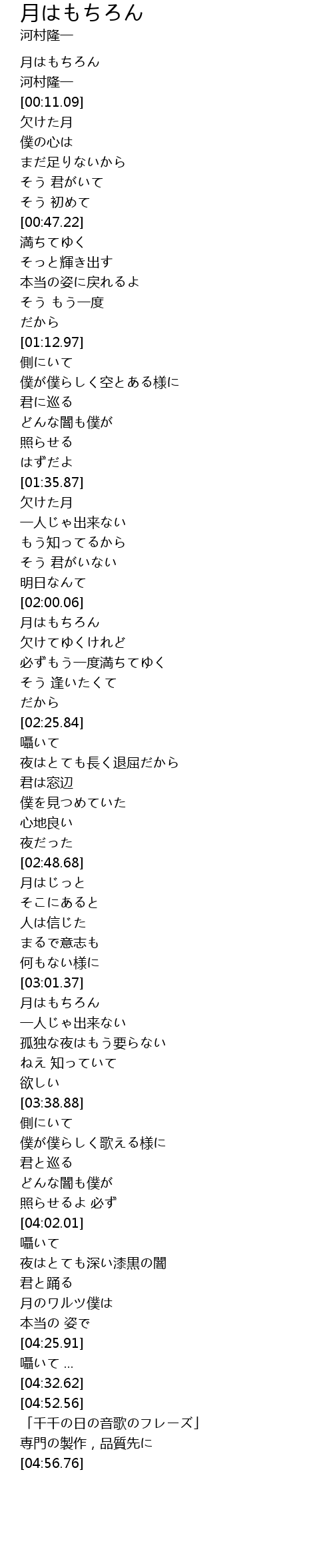 | [02:01.38] | 月はもちろん |