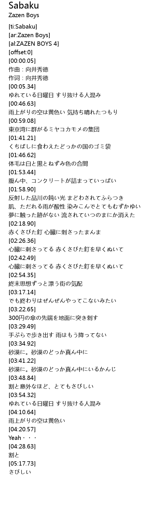 | [04:00.61] | ゆれている日曜日 すり抜ける人混み |