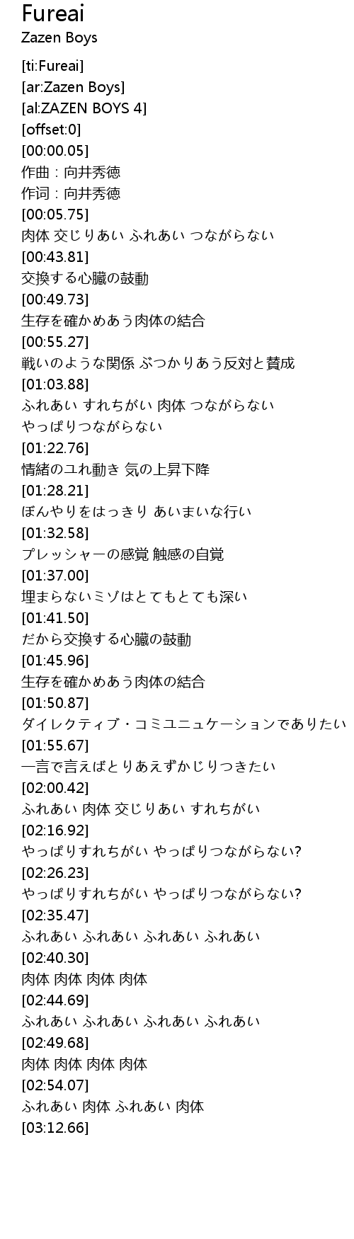| [02:01.26] | ふれあい 肉体 交じりあい すれちがい |