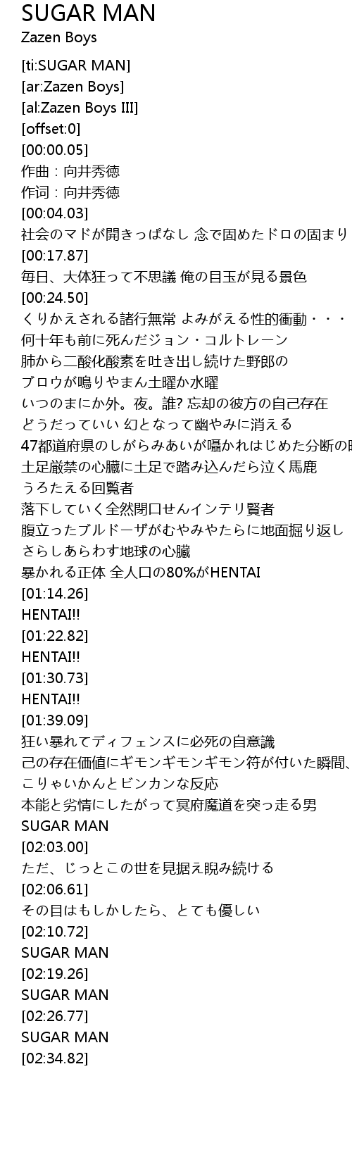 | [02:32.38] | SUGAR MAN |