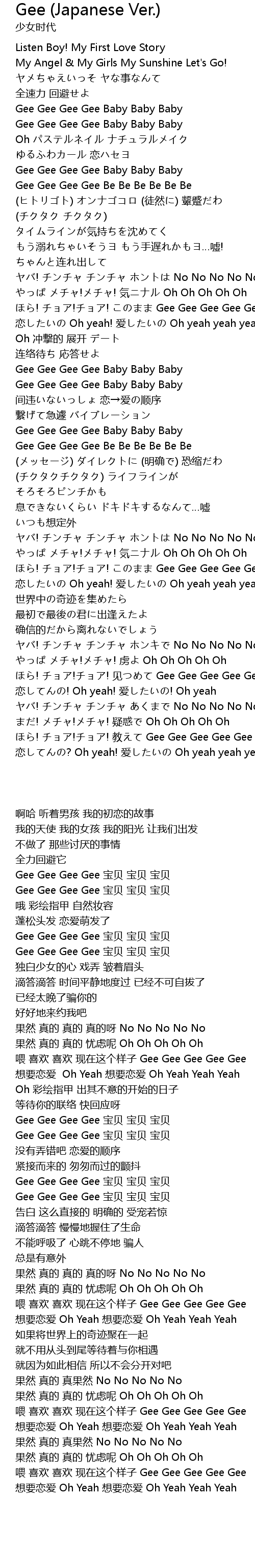 | [00:25.880] | Gee Gee Gee Gee 宝贝 宝贝 宝贝 |