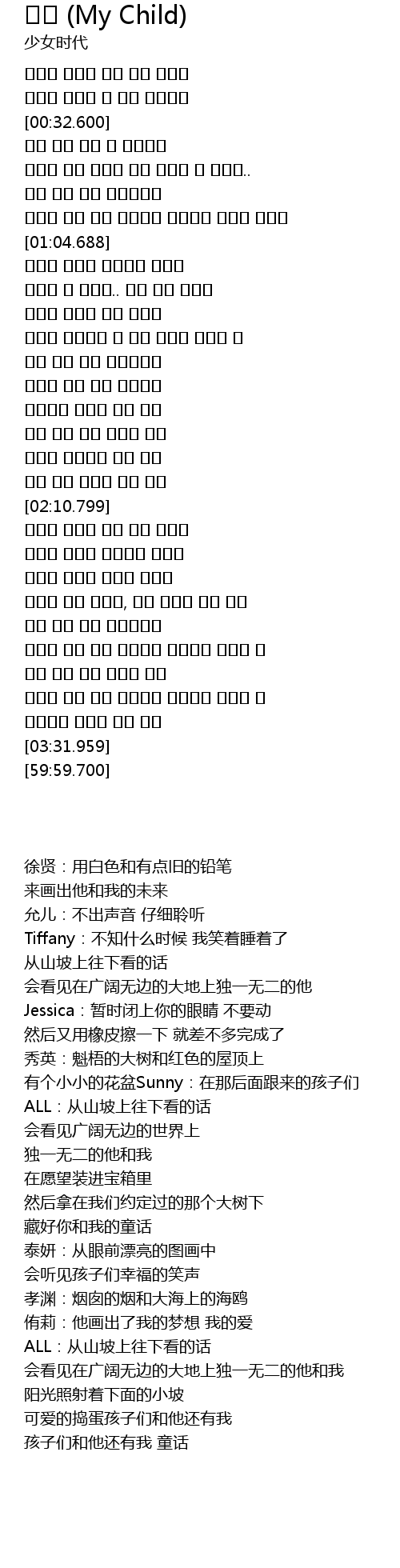 | [02:30.700] | 행복한 꼬마들 웃음소리 들려요 |