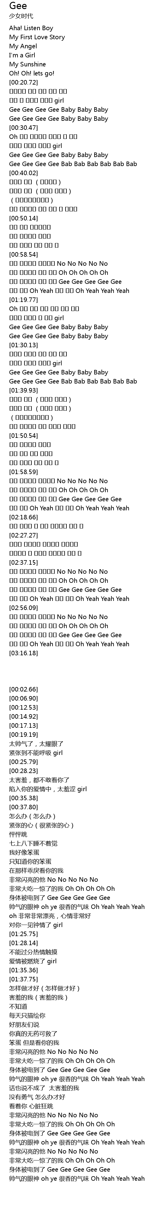 | [00:35.38] | Gee Gee Gee Gee Baby Baby Baby |