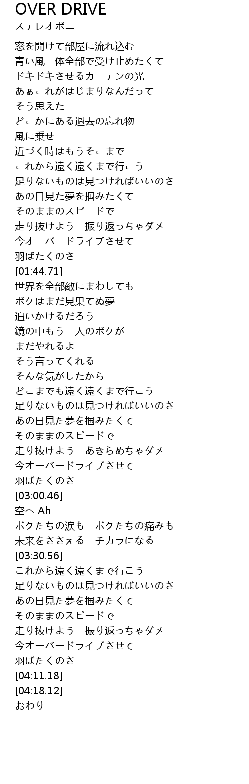 | [04:01.69] | 今オーバードライブさせて |