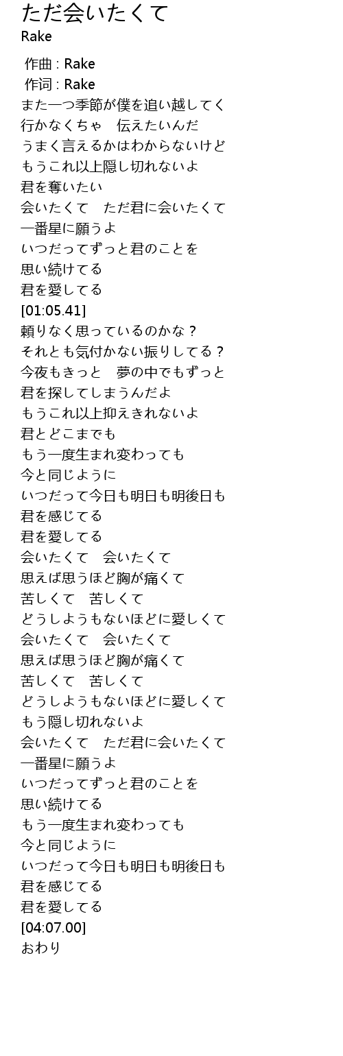 | [00:41.62] | 会いたくて ただ君に会いたくて |