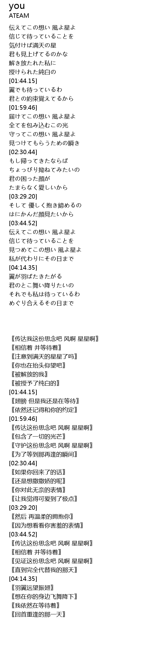 | [03:45.29] | 〖传达这份思念吧 风啊 星星啊〗 |