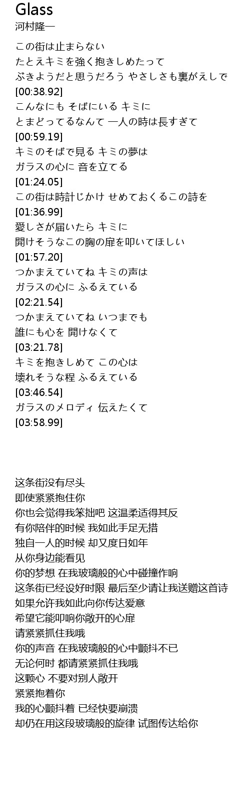 | [03:48.34] | ガラスのメロディ 伝えたくて |