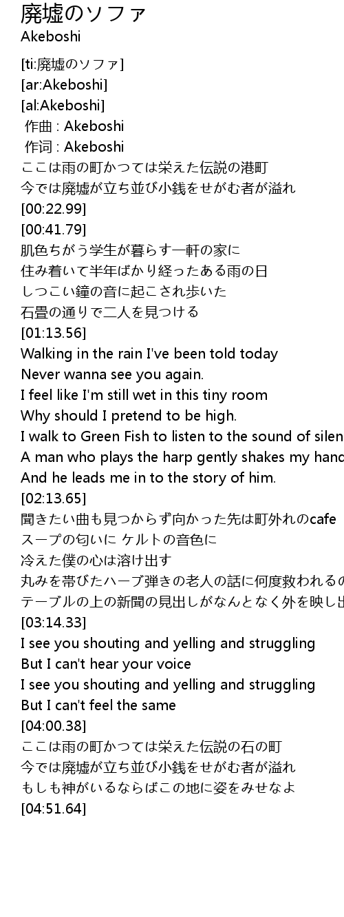 | [00:00.00] | zuò qǔ : Akeboshi |