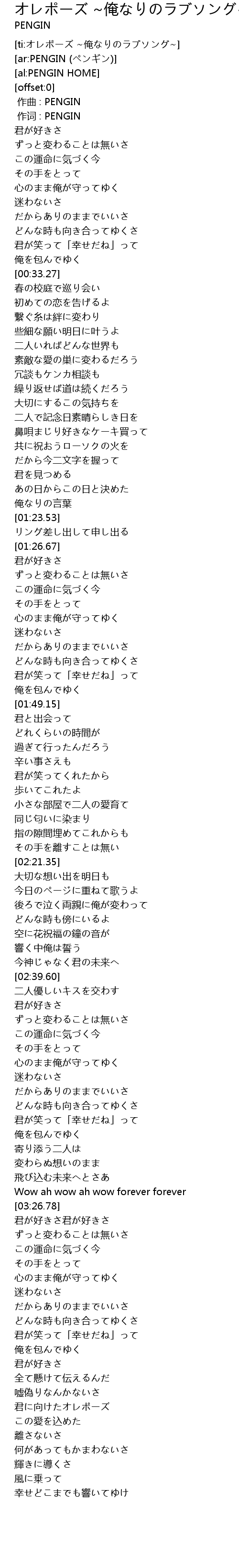 | [ti:オレポーズ ~俺なりのラブソング~] | |