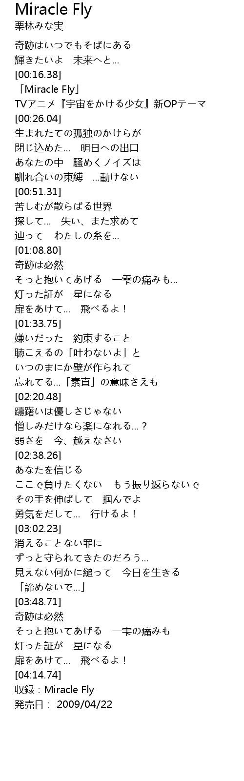| [04:17.74] | 収録:Miracle Fly |