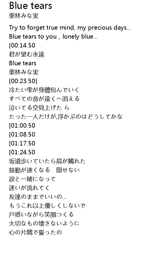 | [00:10.50] | Blue tears to you, lonely blue... |