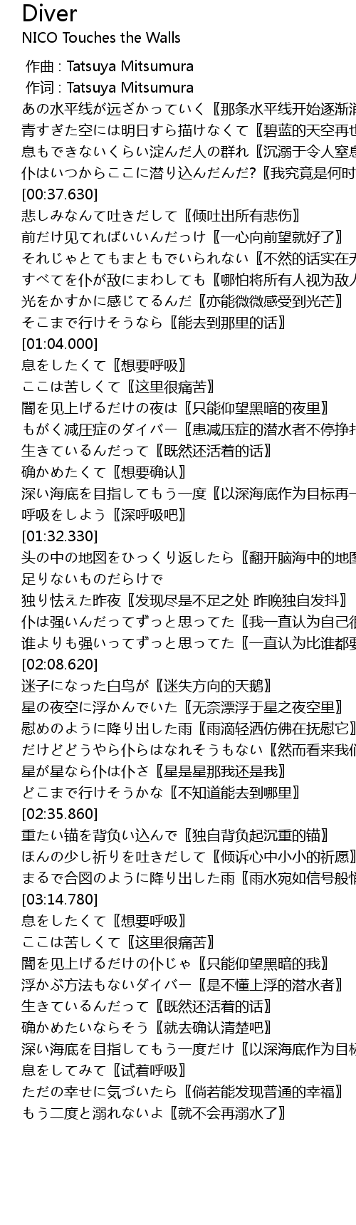 | [03:26.370] | 浮かぶ方法もないダイバー〖是不懂上浮的潜水者〗 |