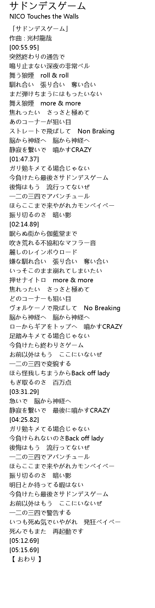 | [00:15.95] | 「サドンデスゲーム」 |
